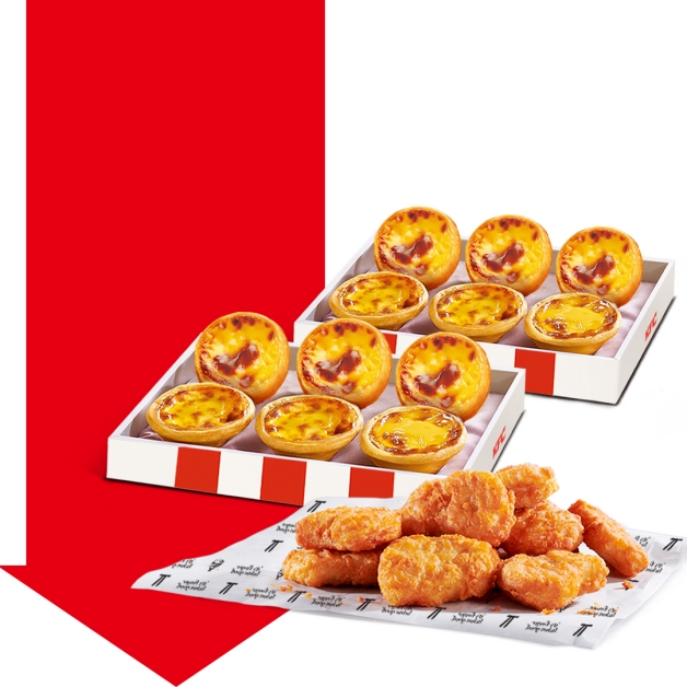 肯德基雙12一樣推出超多好康優惠,4塊上校雞塊、香酥脆薯、冰心蛋撻風味冰淇淋通通買一送一爽吃,且現在只要購買兩盒原味蛋撻禮盒,就送8塊上校雞塊,蛋塔控的妞妞們必須吃爆!