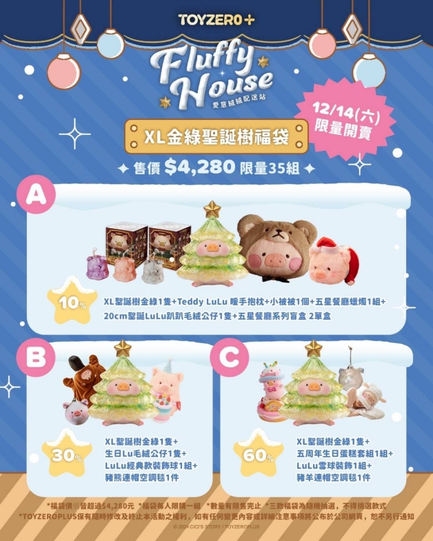 聖誕節即將到來,推薦收「點燈時刻金綠聖誕樹福袋」 ,內含聖誕樹造型罐頭豬LuLu、暖手抱枕、蠟燭等等,超適合交換禮物啊~限量只有35組手速要快!