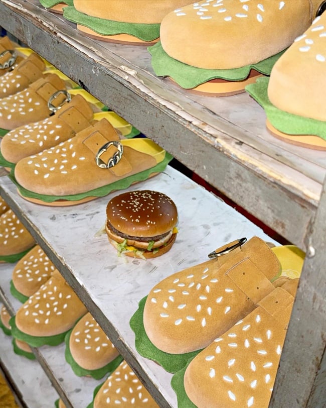 玩心滿滿、創意無限的BB IMP不是第一次搞事情了!今年就曾腦洞大開,把速食界龍頭麥當勞的人氣餐點「大麥克漢堡」結合勃肯鞋型,芝麻黃金麵包夾著生菜、起司的Mental Free聯名漢堡懶人拖鞋Burger Mules一亮相,果然引爆全網關注,美中不足的只有…肉片有好像點小塊以致於看不出來(笑)。
