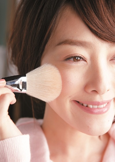 STEP2:蜜粉刷代替腮紅刷大面積掃過兩頰,畫出若有似無的紅潤感。