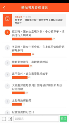 投票題目:你覺得什麼行為對女生是體貼且溫暖的呢?