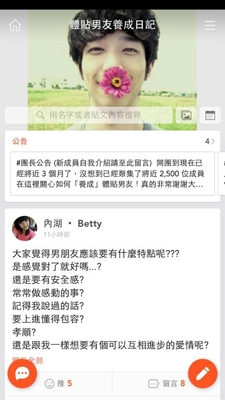 在「體貼男友養成日記」的 BAND 群組中,聚集了超過 2,500 個成員,彼此分享自己或身邊暖男的貼心事跡、如何成為或是養成體貼男友。一個網路熱議的話題在 BAND 上造成群聚效應,也讓這群人在此找到歸屬。