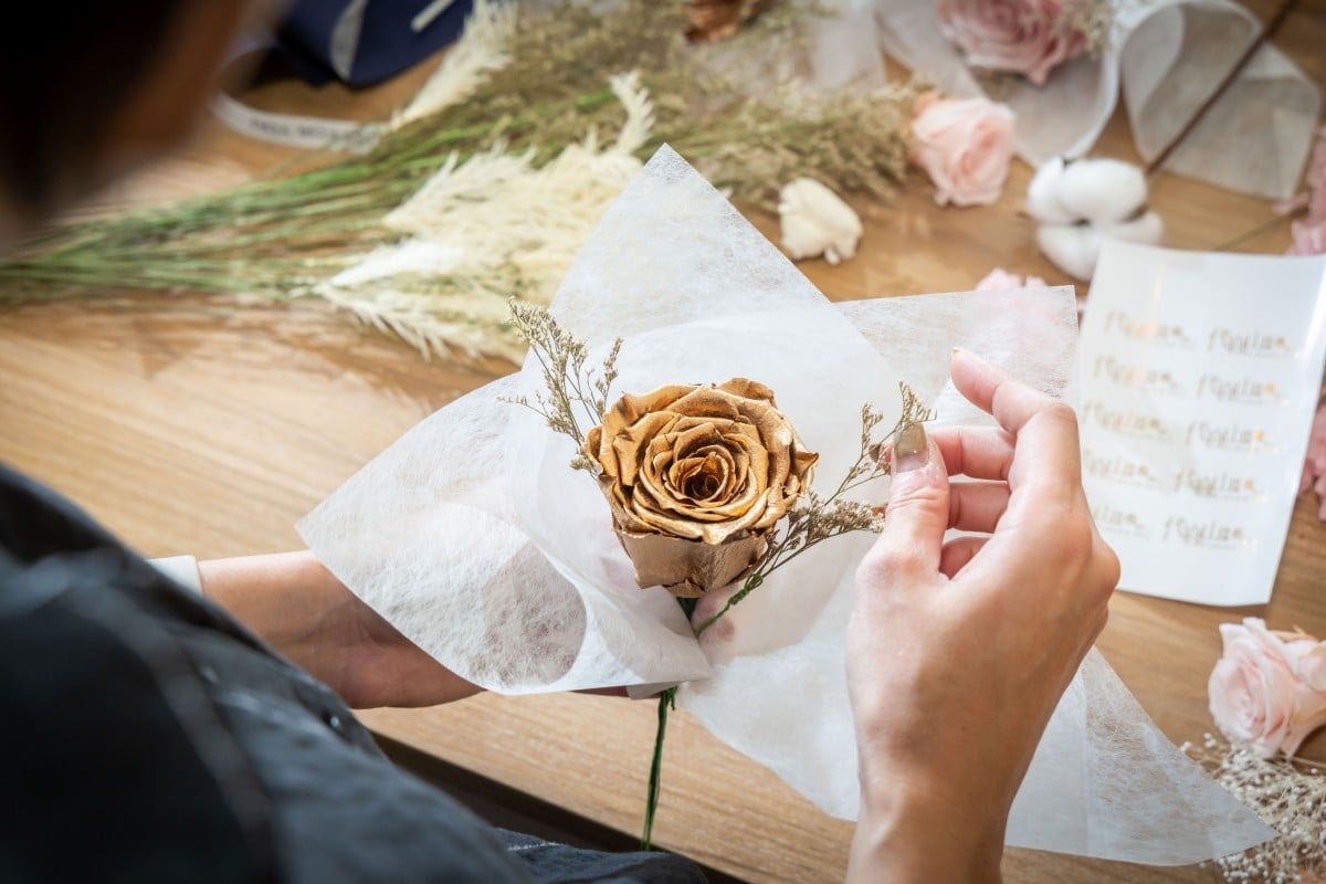 這次,代官山花苑更同步推出「花束一條龍服務」,提供客製化花束。不僅能指定色系、風格與預算,更可配合訂位流程安排送達。