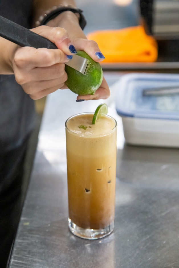 GinGin的咖啡主要使用兩種配方豆,其一為「淺焙」的水洗耶加和哥倫比亞,帶點花果香,其二為「中深焙」的瓜地馬拉、巴西和哥倫比亞,帶巧克力味,招牌的「教父aka西西里咖啡」就選用後者,有別於一般的咖啡廳選用淺焙,他們則改用中深焙,味道強烈之餘,也能讓對比感拉伸,再搭配黑糖和新鮮檸檬汁所製成,就算沒看到《教父》,也要來一杯啊!