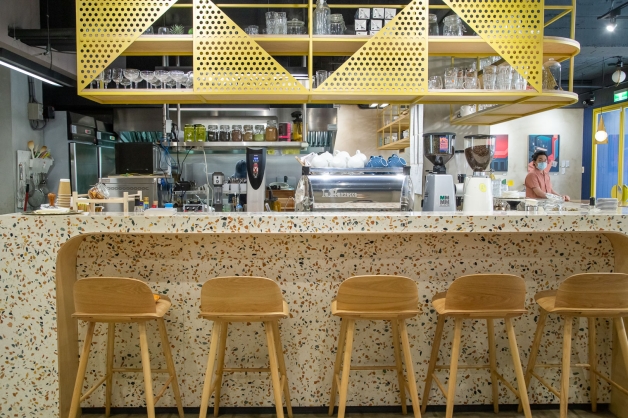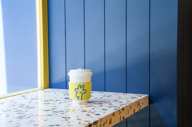 有別於一般使用木質調和暮色橘作為主色調,GinGin選用長頸鹿「亮麗黃」搭配「靛青藍」兩種對比鮮明的配色,在logo和店裝以長頸鹿元素進行妝點,不論是員工圍裙還是外帶杯套皆可見,他們就是要打破大眾對於咖啡廳的印象,給予光顧的客人一種「不隨波逐流」的品牌精神,特別是還號稱是一間「沒有WiFi而且有點吵」、有著「親切貼心的服務但又不會過於親暱」的咖啡餐館,個性鮮明如當初選用跳色系的活潑感,給人不拘束的歡樂氣息!