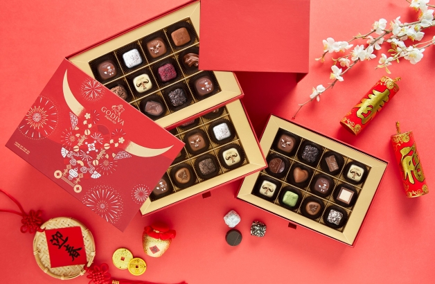 牛轉乾坤的新年即將來到,GODIVA 推出2021新年限量系列,以中國傳統生肖為靈感,輔以象徵富貴的金色及吉祥的紅色,以簡約線條勾勒饒富藝術及現代感的生肖牛圖案,新年巧克力禮盒有28片裝、15片裝、9顆裝、18顆裝、22顆裝、28顆裝、36顆裝和新年松露巧克力鐵盒,除此之外,還有香橙覆盆子白巧克力、榛果蓉牛奶巧克力和杏仁慕絲黑巧克力三款限量巧克力!