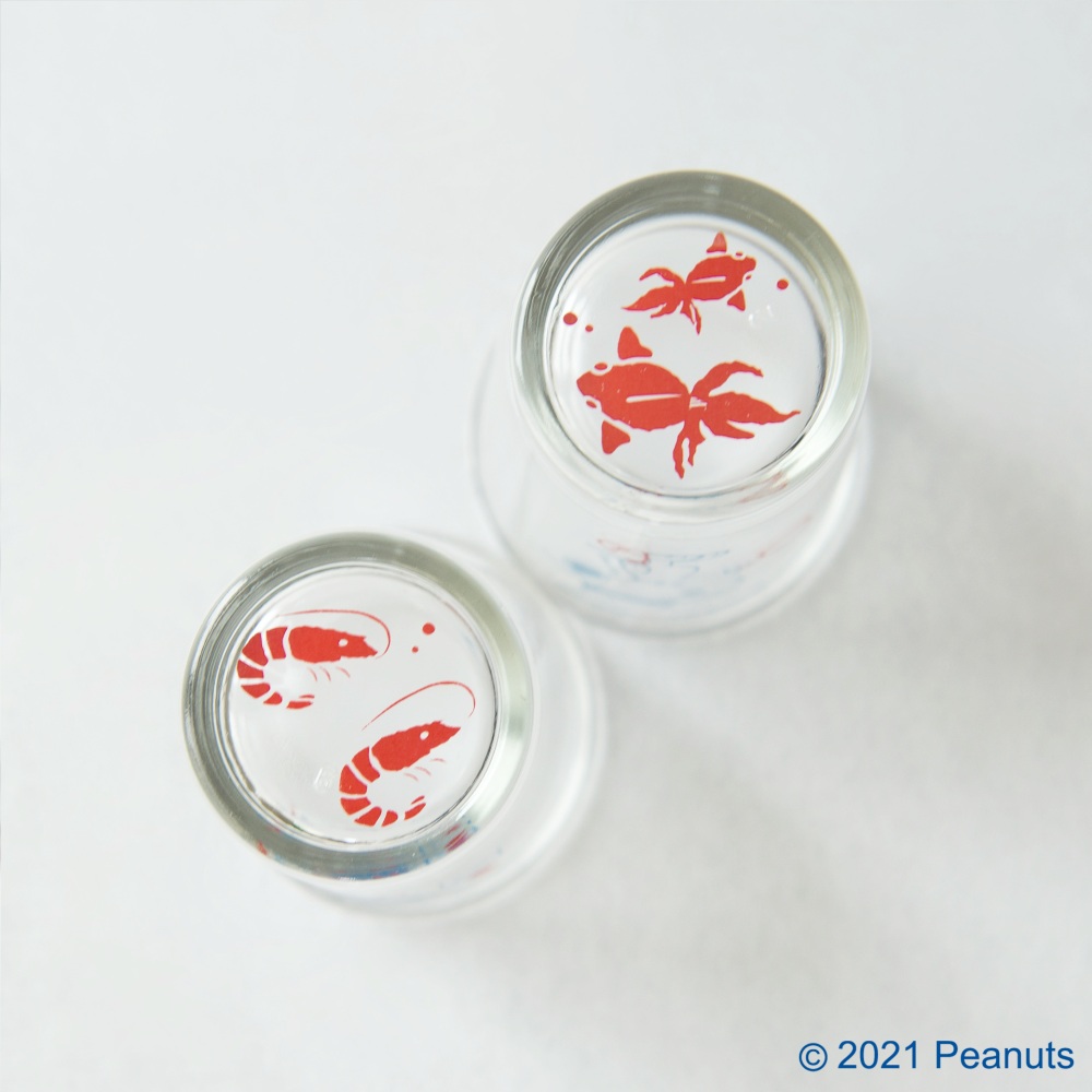 組合內含2款限定143玻璃杯,以正在體驗夜市遊戲的史努比、胡士托為圖案,並放入必吃甜點「糖葫蘆」,杯底更藏著小驚喜(金魚與蝦子),揭曉胡士托其實正在釣蝦子