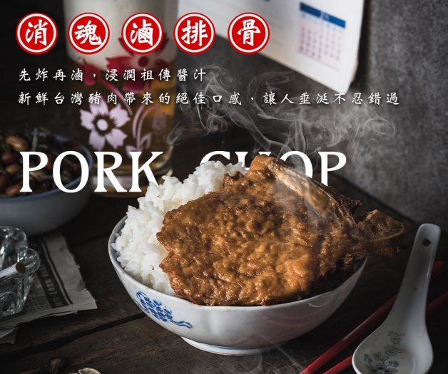 招牌主力「銷魂滷排骨」,以帶骨大排先炸後滷,鎖住肉汁鮮甜,再加入祖傳三代的獨門秘方,慢滷48小時入味,銷魂滋味是消費者回購力最強的主打品項,只要自己加顆半熟荷包蛋和燙青菜就是完美的一餐,吃過的都強力推薦。