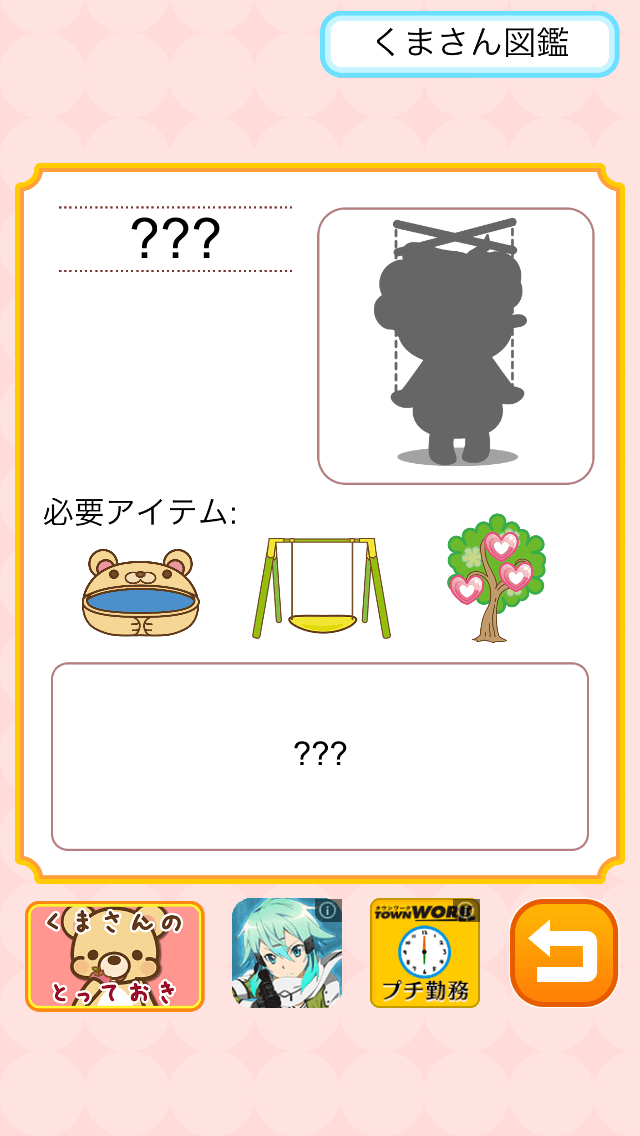 在圖鑑選項裡,可以看到要變身哪種熊,需要那些道具。只要天時地利人和就能變身成新品種熊喔!如果分享小熊,還可以得到成長劑呢!