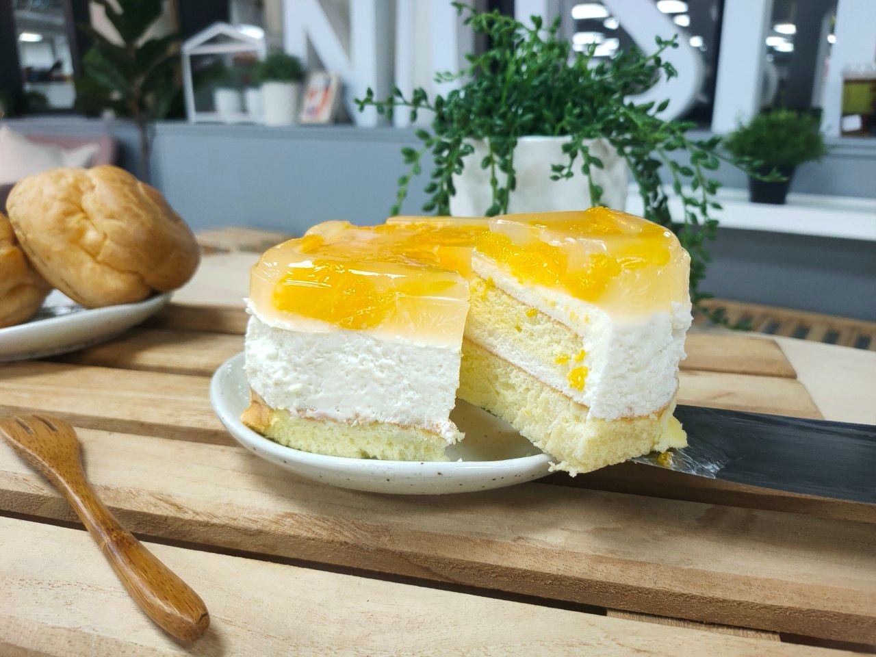 喜歡吃QQ的慕斯嗎?那麼這款「魔晶橘瓣蛋糕」絕對不能錯過~頂層是橘子果凍,中間搭配香氣十足的乳酪慕斯和切片柑橘果肉,底部搭配戚風蛋糕,橘子味比較沒那麼明顯。