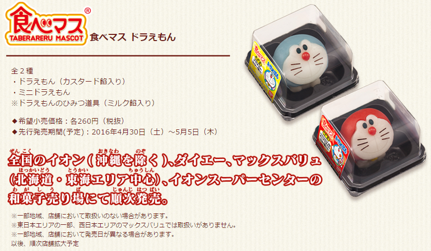 哆啦A夢控請注意!×3;重要事情說三次日本BANDAI即將在4月底推出「哆啦A夢和菓子」(食べマス ドラえもん)!可愛的宣傳照是否覺得眼熟?因為BANDAI過去也有推出超可愛的妖怪手錶和菓子」!這次哆啦A夢有2款,分別是A夢(過分親暱簡稱)迷你哆啦!咦咦咦?這根本就是兩隻迷你哆啦啊!超級可愛啦!!!(尖叫)