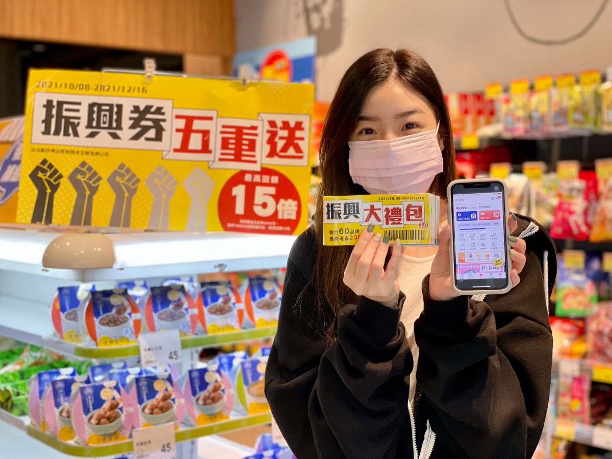 會員可以把紙本振興券儲存進PX Pay裡頭,最高可享10%福利點回饋,而且每儲值1,000元就可享1次抽獎機會,活動期間每週都有機會獲得10,000元振興福利金,同時再加贈「振興大禮包2.0版」與「PXGo!小時達」折價券,今年一口氣將振興五倍券價值回饋達15倍,讓全民一起消費購物振興國內經濟!