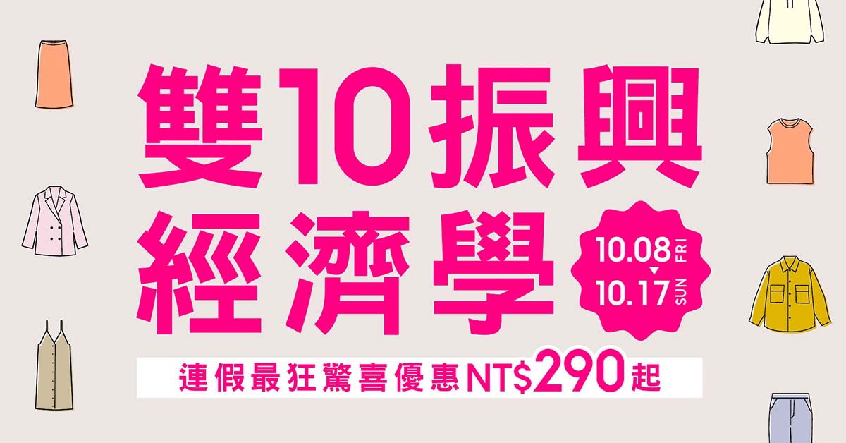 「雙10振興經濟學」限時開跑 多款秋冬單品$290元起
