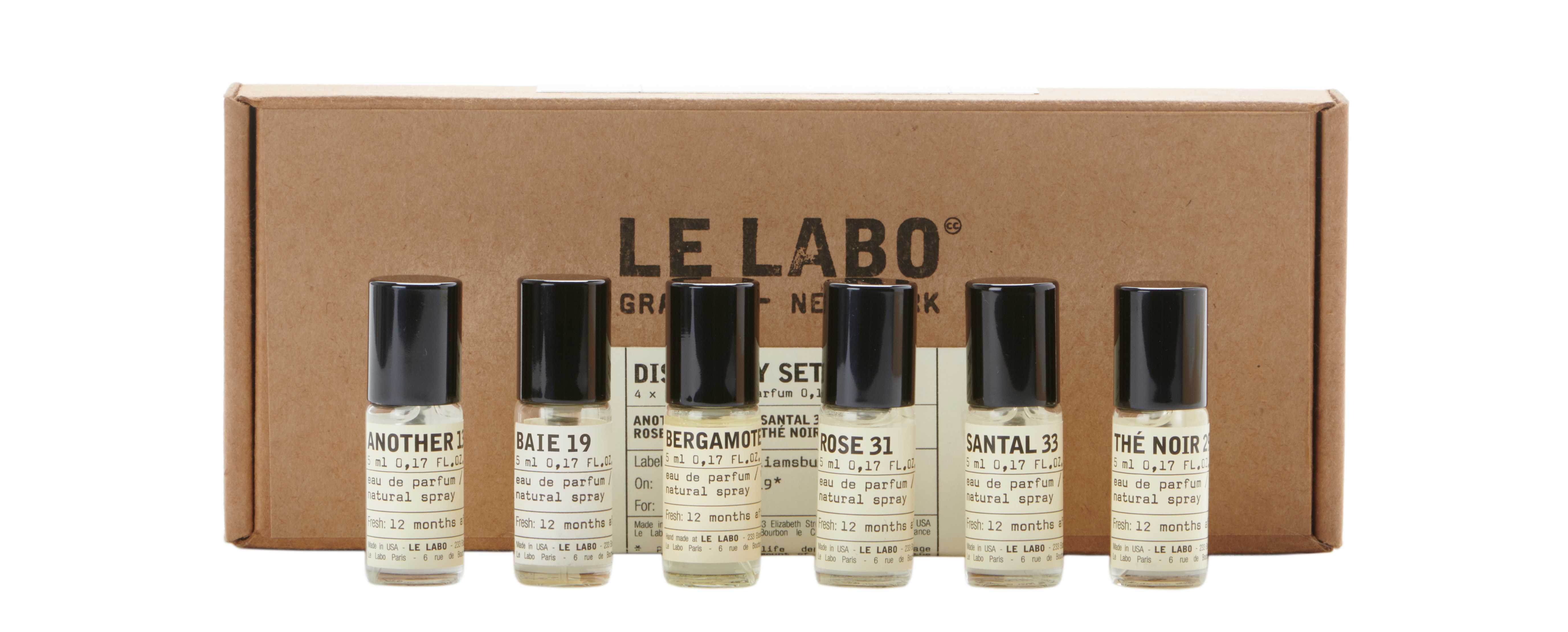 禮盒內收入LE LABO非常受歡迎的6款香氛,包含佛手柑22、ANOTHER 13、玫瑰31、黑茶29、檀香33、樹果19淡香精,全台LE LABO專門店獨家販售:LE LABO松菸專門店/新光三越A11專門店/台中勤美誠品專門店