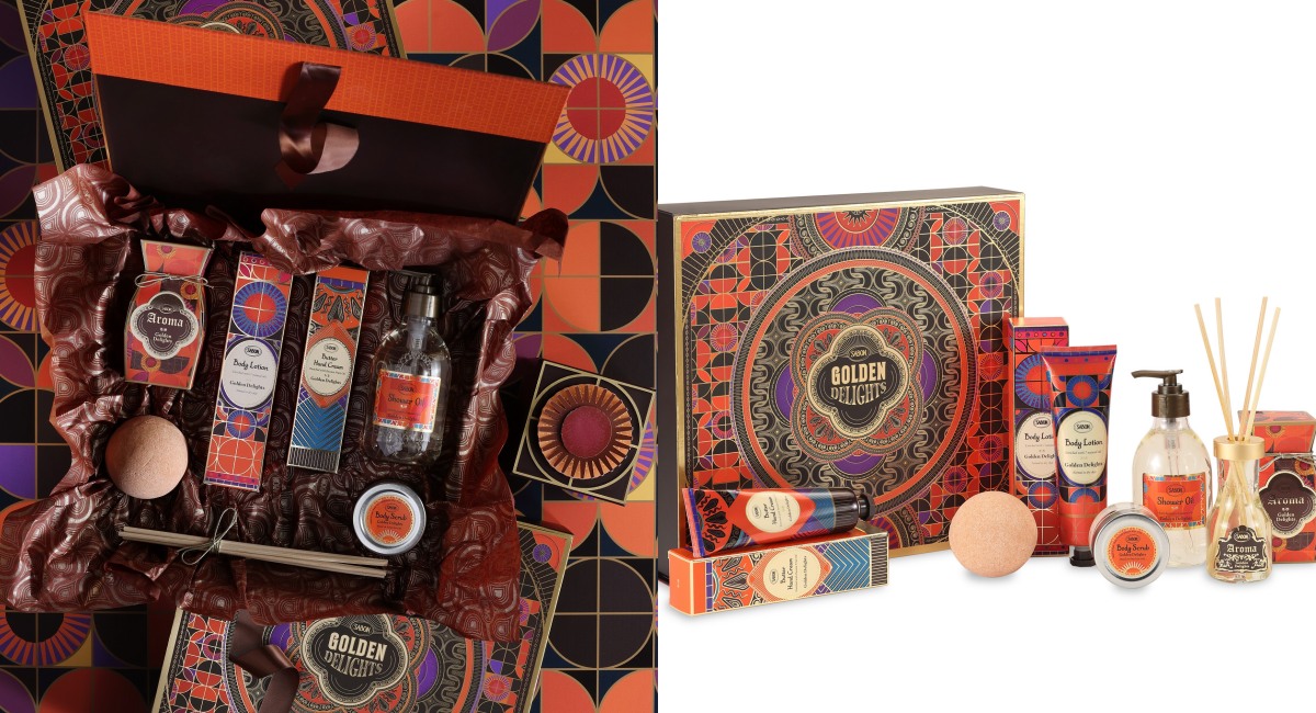 SABON今年聖誕以《流金年華限量系列》向最美好不羈的年代致敬──充滿自由與灑脫「搖擺60年代 (The Swinging Sixties)」,對世人宣告任何想像能成真!將橙橘與巧克力兩種迥異的香味完美融合,這組禮盒直接收入六款人氣商品,從沐浴到空間一次擁有,禮盒包含:身體磨砂膏 60g、沐浴油 300ml、身體乳液 150ml、極潤護手霜 75ml、薰香組 100ml、沐浴球 160g。
