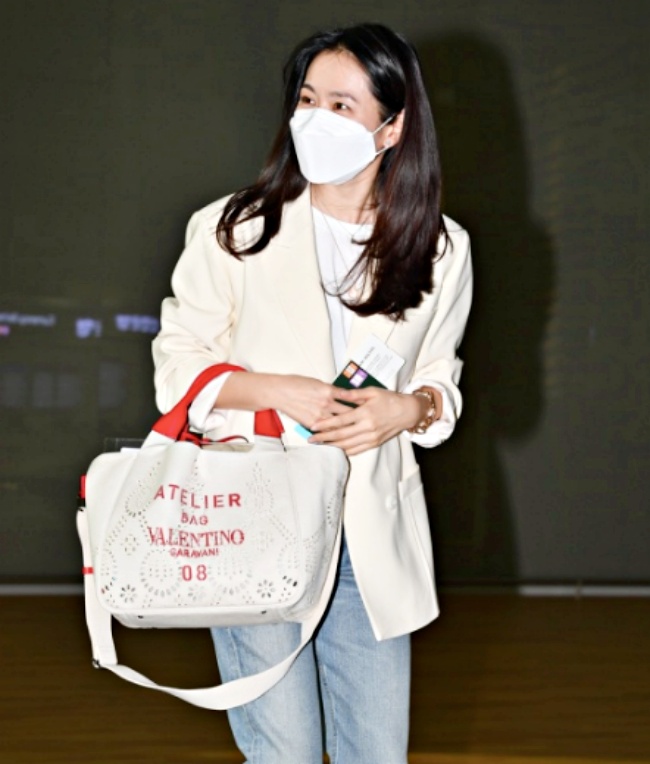 昨天傍晚,玄彬以及孫藝珍分別都穿著「純白上半身」出現在韓國仁川機場,晉升人妻的孫藝珍以白色西裝外套混搭白TEE、牛仔褲,休閒中不失時髦,手上提著這顆「蜜月包」也是大有來頭,來自義大利時尚品牌Valentino,紅、白配色的帆布托特包超吸睛,立刻被網友狂搜!