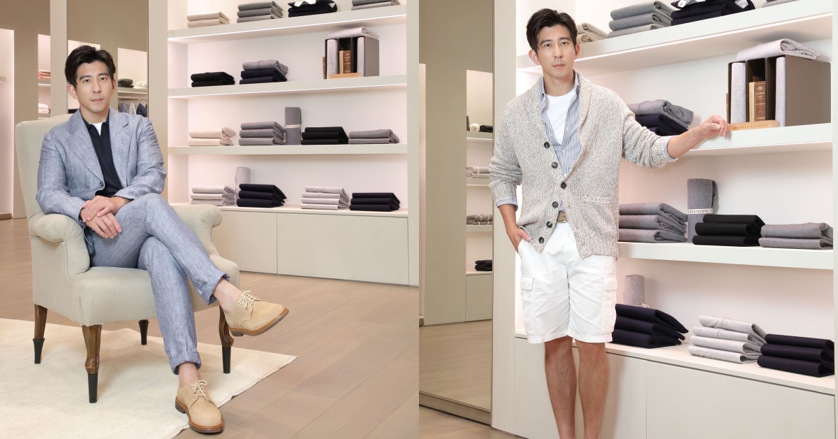 葛檢今天以一襲天空藍亞麻材質西裝亮相,天然纖維材質展現夏季輕盈雅致。修杰楷表示:「春夏系列不論是比較正式或者休閒舒適的服飾我非常喜歡,溫柔且有力量。自己非常喜歡戶外運動,也時常要顧小孩,舒適能夠靈活走跳非常重要,這季BRUNELLO CUCINELLI偏休閒的運動套裝對我來說非常實穿。還有也非常推薦針織外套,中性色調、中深色系的搭配,材質真的非常柔軟舒適,穿上去真的很不想脫下來。」