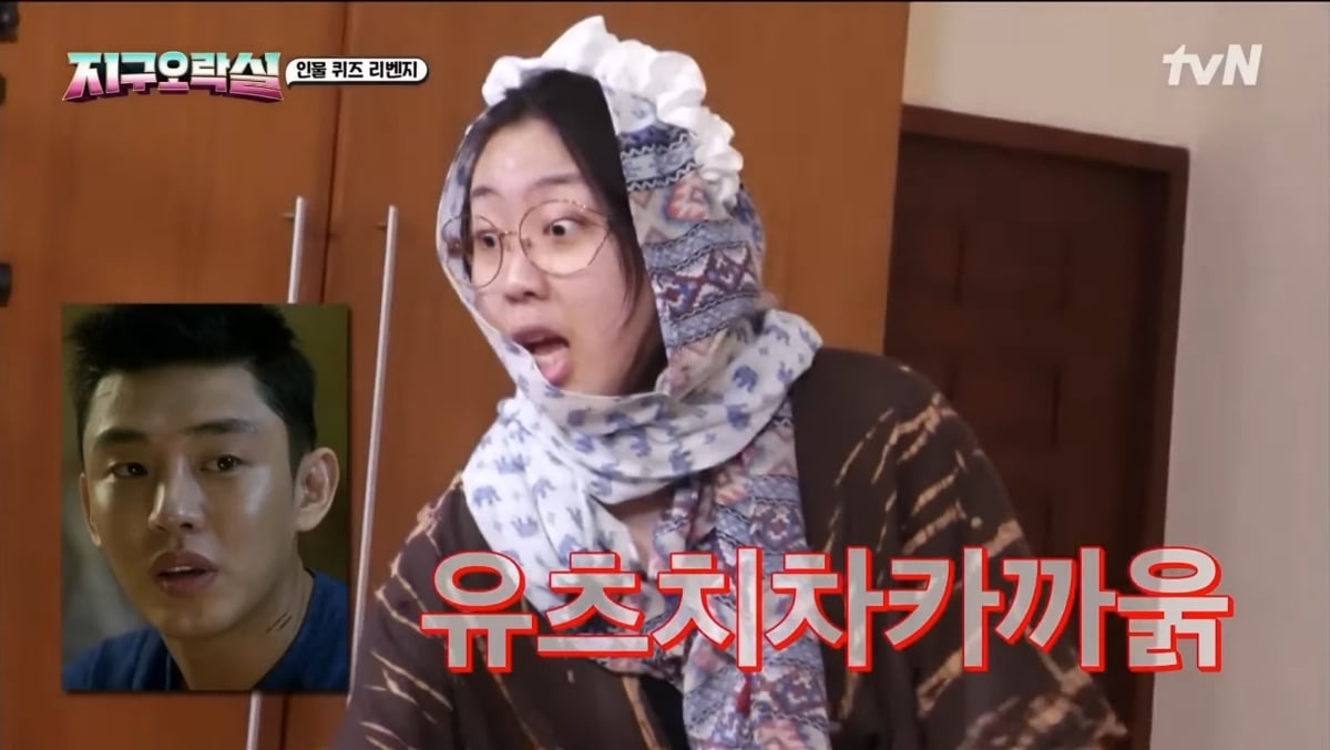 繼續在人物問答遊戲滑鐵盧的泳知,這次更是直接面臨下車危機,不但不認識演員鄭敬淏,連知名電視劇《機智醫生生活》和《請回答系列》都沒看過,這些作品可都是《地球娛樂室》的擔當作家李祐汀的編劇作品呀!荒唐的發展讓成員李恩智開玩笑得說「看來下一季沒有泳知了」(笑)