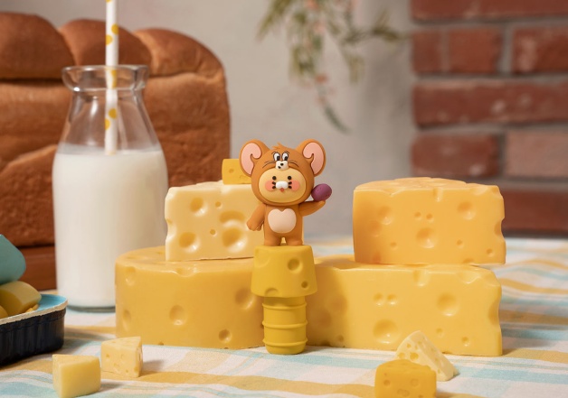 說到傑利鼠就會想到「起司」,聯名推出的「瓶塞」可見春植勇猛地站在奶酪上,手上還拿著他最愛的紅薯地瓜,方便保管喝不下的瓶裝飲料,注意取出時,請抓住奶酪處!