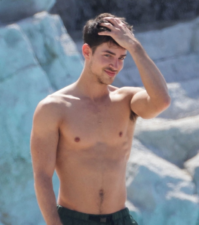 不過這次被大家熱議的不是曼諾瑞亞斯的紅毯造型,而是他在影展的閒暇之餘,與自己的造型師在坎城海邊玩水做日光浴的系列照,照片中穿著運動短褲、上身打赤膊的曼諾瑞亞斯一身精壯的肌肉一覽無遺,尤其是側身時的胸肌與冰塊盒腹肌更是線條分明,甚至在海邊還不忘秀一下伏地挺身鍛鍊線條,讓許多看到照片的網友們大呼「實在太養眼~」