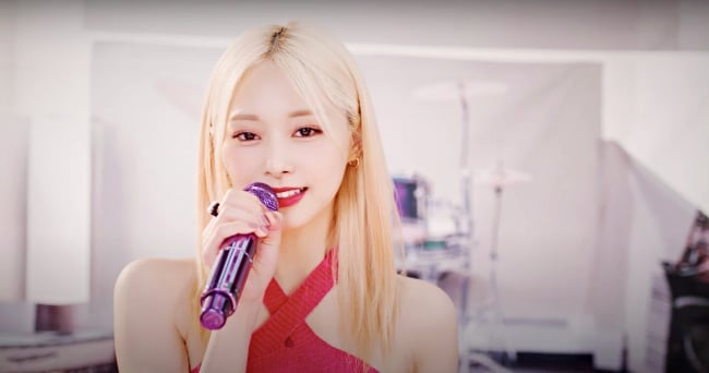 本次回歸隊內的忙內成員子瑜罕見嘗試多種髮型,從預告照到MV至少有3段式變髮( TWICE回歸MV子瑜變身鮭魚丼?「櫻花粉髪VS淡妝瀏海」3段式變髮),近日又驚喜公開收錄曲〈Queen of Hearts〉的LIVE演出版本,全員變身一支限定樂團精彩演唱,子瑜就頂著「白金中分秀髮」出鏡,搭配紅色的無袖背心、在腰間做出性感綁帶設計,大方展現零贅肉的螞蟻腰,吸睛造型也被網友大讚:「超亮眼!」