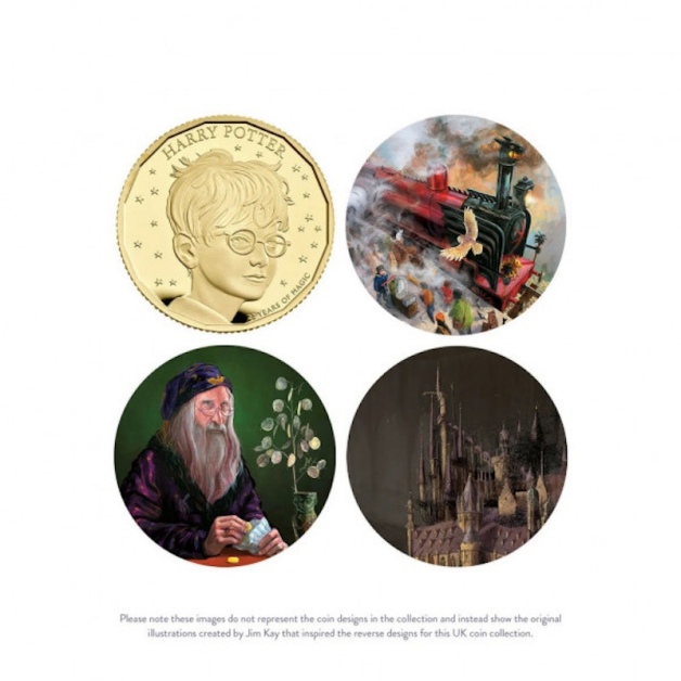 哈利波特紀念幣系列共有4款,面值分別為50便士、10英鎊、25英鎊及200英鎊,售價為11英鎊起,有齊彩色、金幣、銅幣及銀幣。每款印有哈利頭像的紀念幣,在轉動時可以看到隱藏的「25」及哈利標誌性的閃電傷疤,細節非常精緻!