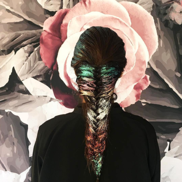 就是這個!把彩虹般的七彩亮粉疊擦在髮辮上,是不是真的很厲害?(完全不輸轉吧~轉吧~七彩霓虹燈~)