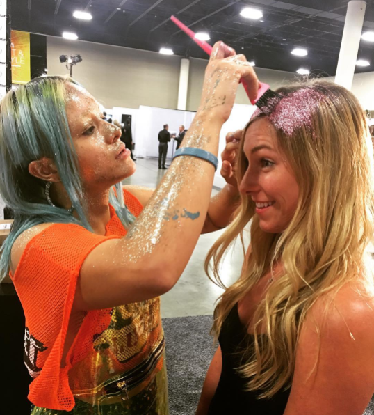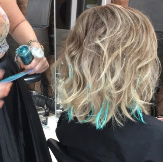 這樣閃爆人的造型,其實是使用一種獨特的亮粉凝膠完成,相當好上色,附著力也很棒。只是滿頭的亮粉,在派對引領風騷後,回家洗頭應該會很想哭吧!(感覺洗100次還是會卡在髮絲上啊~)妞編輯覺得還是上髮廊,請專業的來幫忙清潔比較實在啦!
