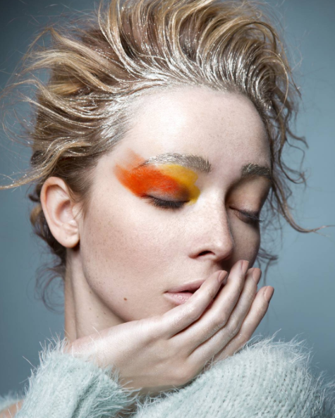 有些人甚至把亮粉塗在眉毛上,光是單色亮粉就夠搶眼了。想要玩更大一點的,可以用彩色亮粉混色,或左右邊眉毛挑戰對比色。(亮粉要黏牢一點,以免掉進眼睛,在派對上淚流滿面~)