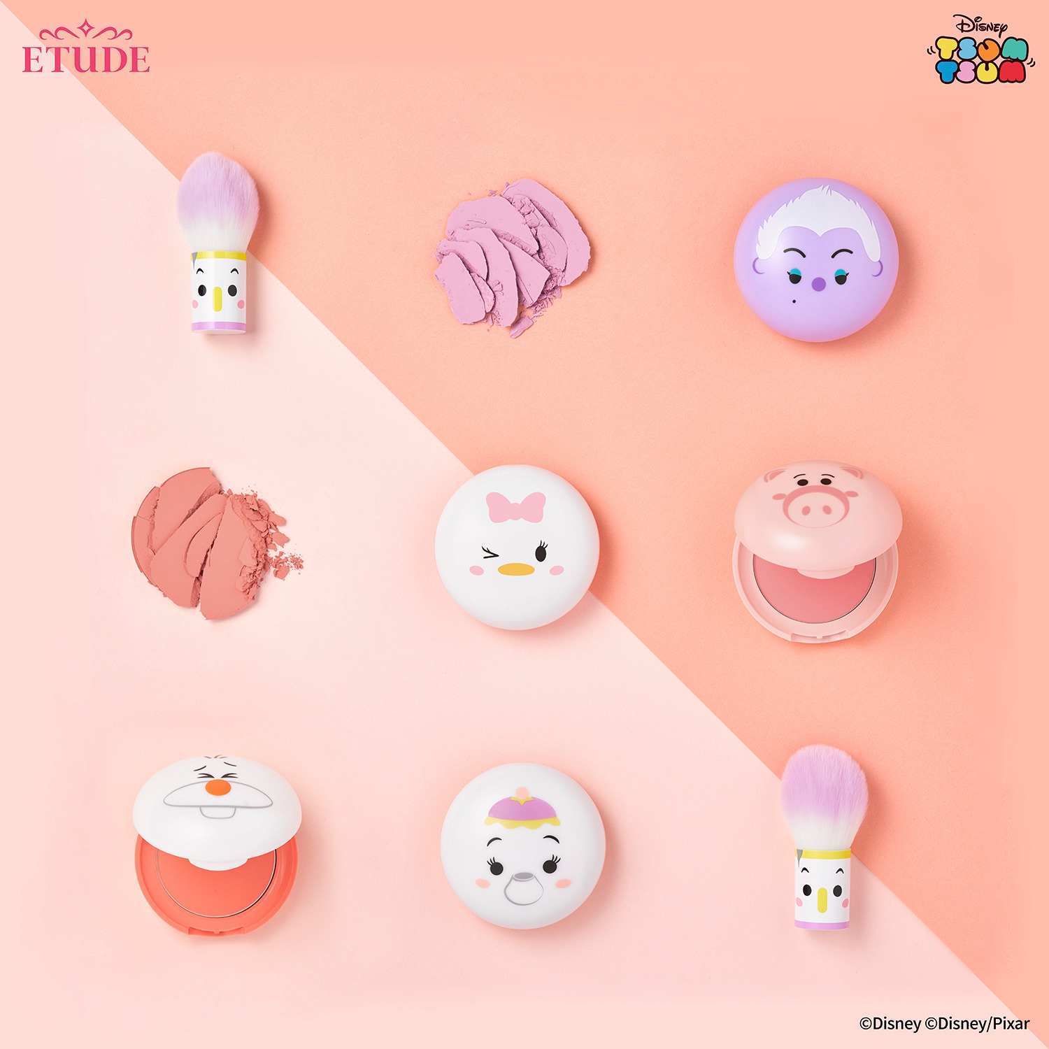 這真的太太太可愛了!ETUDE下半年強勢新品登場,特別攜手迪士尼TSUM TSUM合作,一共推出21個品項,從底妝、唇妝、腮紅、蜜粉、美妝工具都有,每款造型都爆炸可愛,為了他們我願意甘心交出荷包啊!