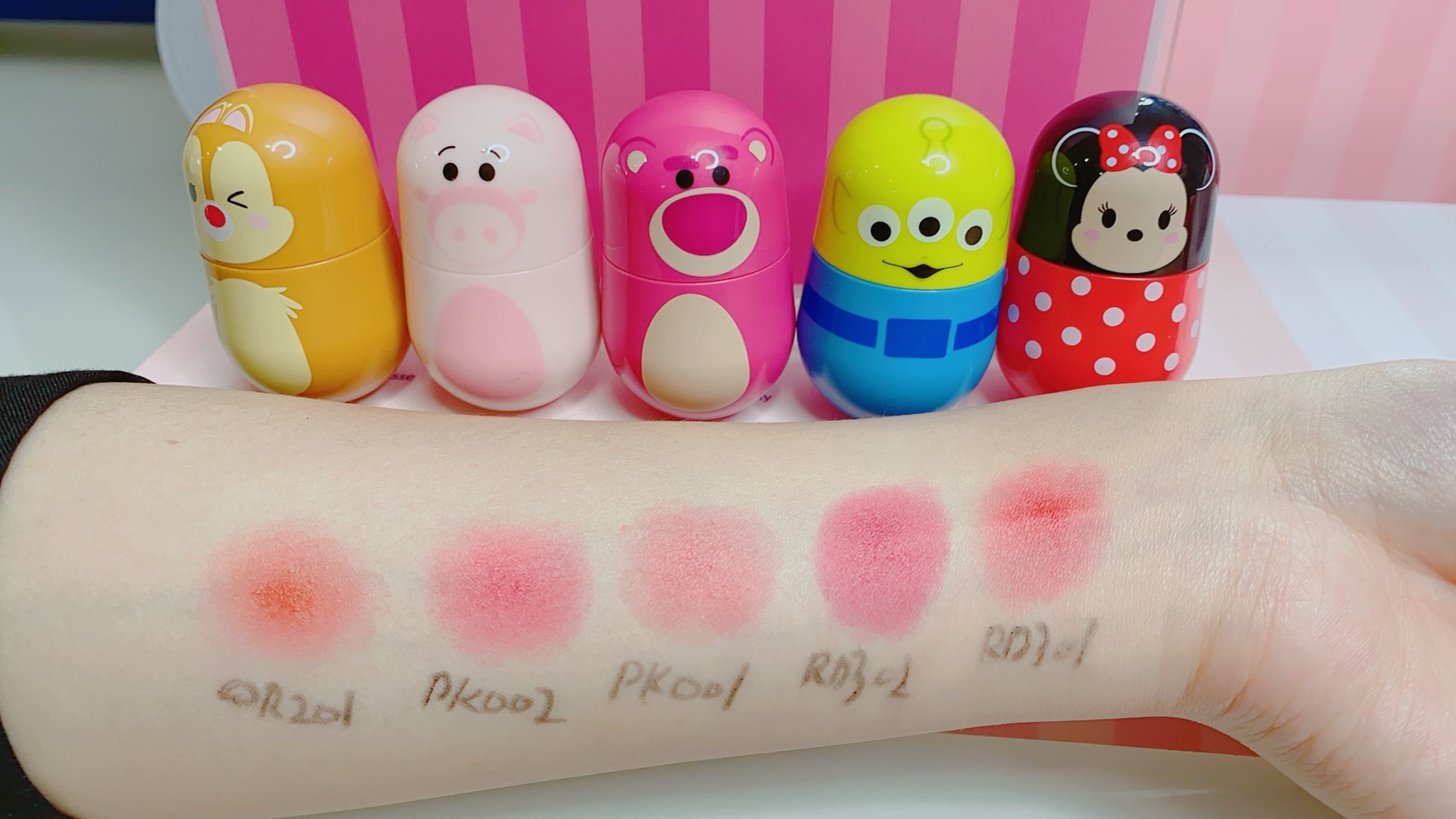 這次的TSUM TSUM系列,最受關注的就是超可愛的不倒翁唇釉!放在桌上忍不住就想要推一推他們,超級療癒,這次特別精選五個顏色,個別呼應迪士尼的每個角色,慕斯的質地能夠快速的上色,帶點薄霧妝效。