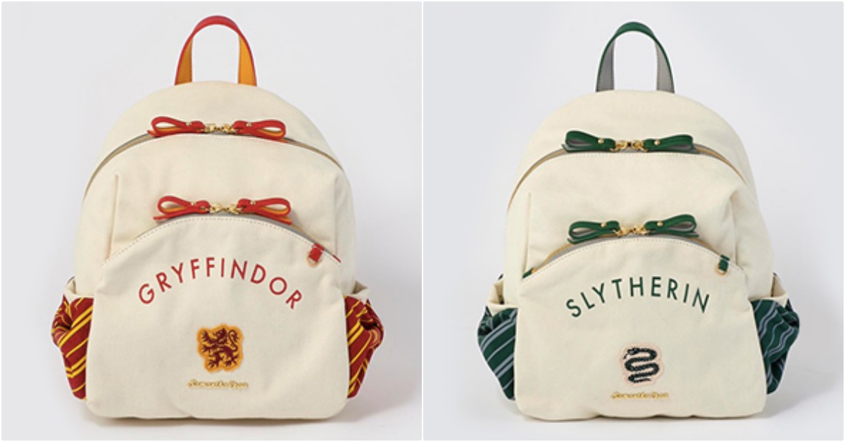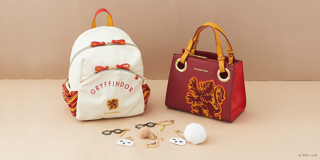 走甜美氣質風格的主品牌Samantha Thavasa,把哈利波特的魔法元素優雅結合,以皮質材質呈現葛萊分多、史萊哲林、赫夫帕夫以及雷文克勞四大學院,推出代表色後揹包以及單肩包,同時將大家熟悉的霍格華茲菱格紋圍巾及領帶作為包款裝飾,精緻又不過於OVER。