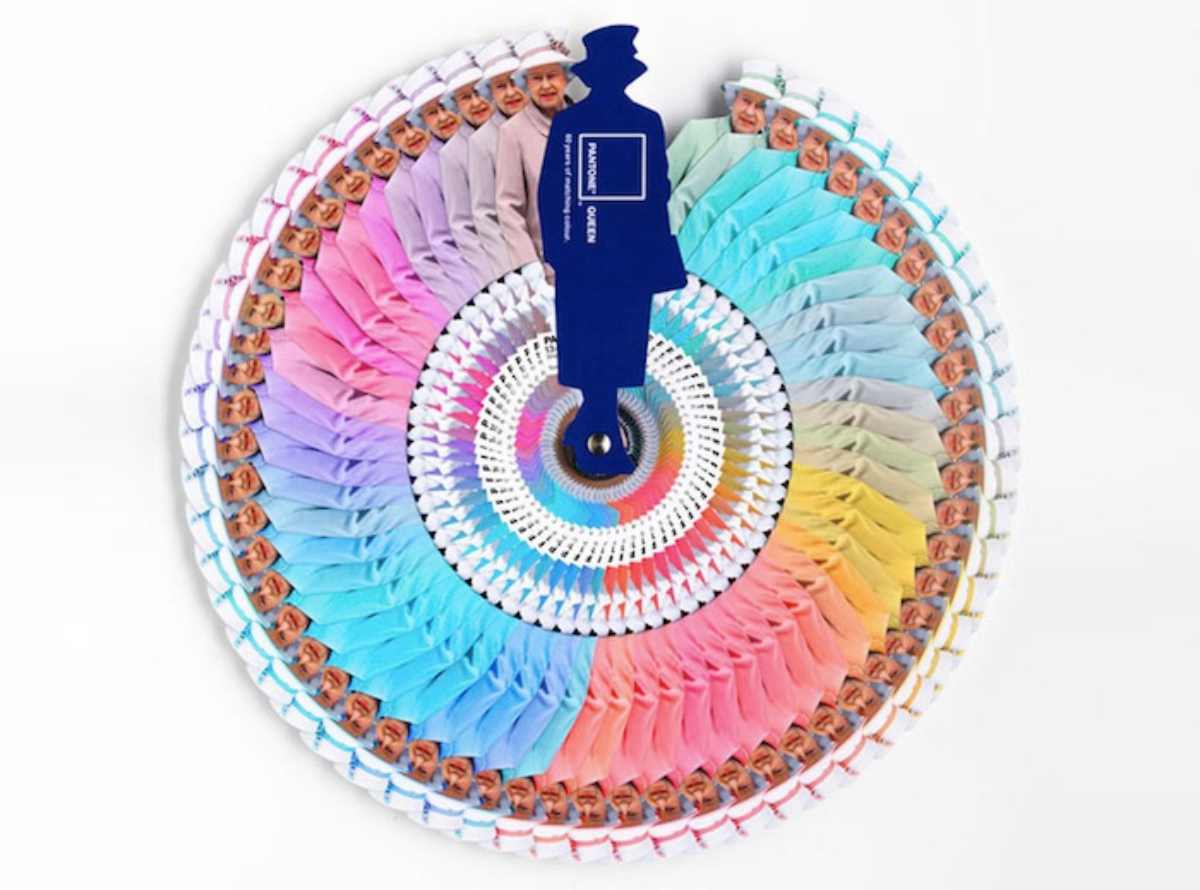 大家應該都知道英國女王簡直可以說是行走色票,一直以來的時尚態度就是「同色系」到底,從服裝、包包、配件甚至雨傘從沒例外,這樣鮮豔又可愛的穿搭風格讓色彩指標PANTONE與倫敦的廣告商(Leo Burnet London)在英國慶祝伊莉莎白二世女王登基60週年時,推出以伊莉莎白二世女王為範本的PANTONE色票卡!