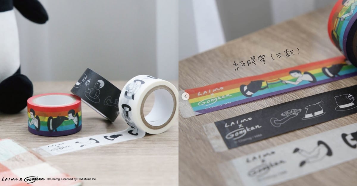 文具控也別急~這次聯名的周邊除了永遠搜集不完的筆記本、明信片之外,還有珍奶、打招呼與台灣同婚通過一大美事的紙膠帶,彩虹底色象徵性別平權的進步,拉開還可以看到來貘與Gongkan竟然偷偷在親親,實在太可愛啦~