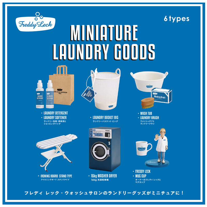 擅長製作迷你模型的日本品牌Kenelephant(ケンエレファント)在9月底與德國精緻洗衣品牌FREDDY LECK聯名的迷你投幣式洗衣店,一共有六款。