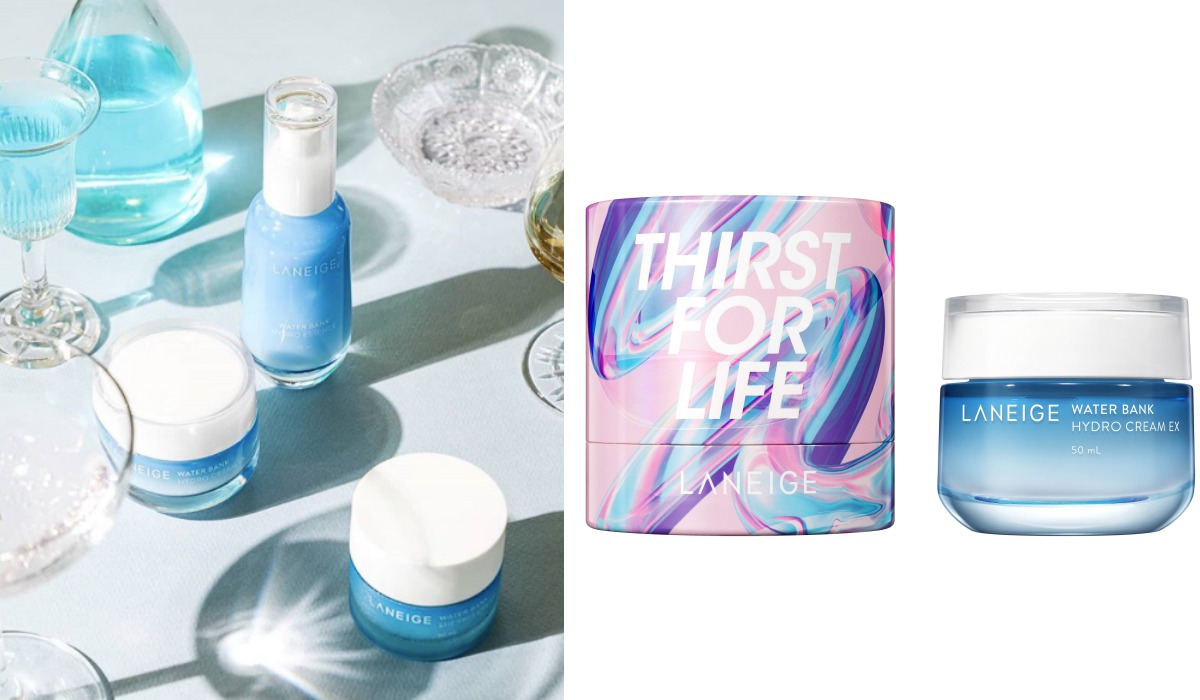今年特別跨界攜手與奧地利的世界知名平面設計師Stefan Sagmeister合作,以「Thirst for life放膽渴望,我閃耀」為主題,為「水酷肌因保濕系列」設計限量版包裝。還幫最熱賣的「水酷肌因保濕精華」,在瓶頸繫上一條精巧的水晶球鍊,象徵著無時無刻盡顯閃耀光采。