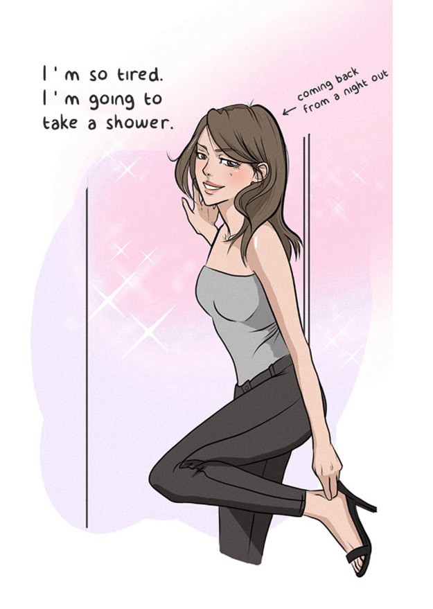 ♀:「我到家了喔,好累~我想去洗個澡。」