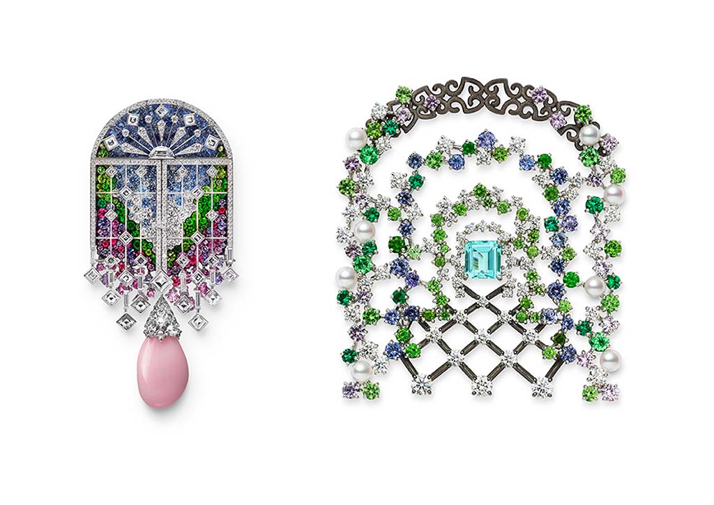 全新《Jardin Mystérieux》頂級珠寶系列,就好比置身一座靜謐花園,裡頭兒有競相爭豔的花朵、鬱鬱蔥蔥的綠藤與樹木、佈滿玫瑰藤蔓的庭園鐵柵、初開嫩葉上的露水、還有各樣動物,漫步在其中,花天錦地的驚喜俯拾皆是。MIKIMOTO 扮演一位才華洋溢的藝術家,把一座又一座花園風景定格在珠寶之上,巧妙的使用多種頂級珠寶工藝,例如以不同色調的彩寶展現景致的豐富;鑲嵌珍珠或寶石搭配空窗琺瑯的技法,創造作品視覺深淺的立體感;亦或是以鍛鐵藝術呈現不同窗景,將 18K 白金鍍黑銠,展現別出生面的鍛鐵柵欄質感等,表現多樣的花園意象。