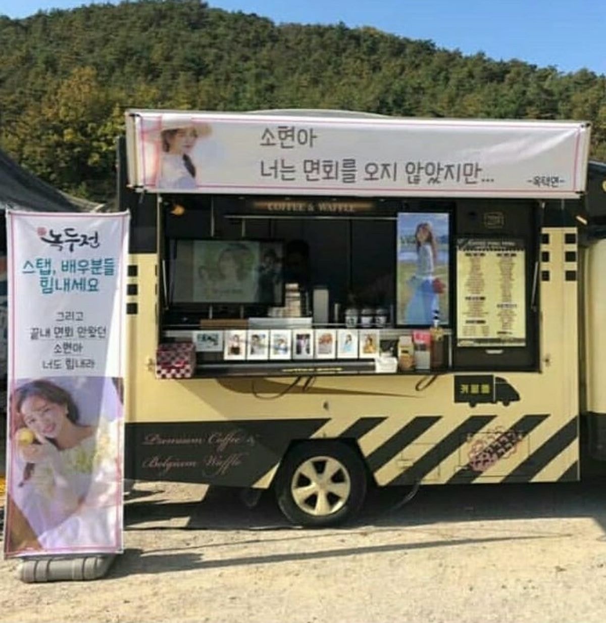 今年5月在粉絲迎接之下退伍,卸下阿兵哥身份的韓星「玉澤演」,即將強勢回歸演藝圈,昨天更暖心向正在拍攝《朝鮮浪漫喜劇–綠豆傳》的「金所泫(金所炫)」送上應援餐車,兩人在2016年合演韓劇《打架吧鬼神》結緣,下戲後依舊維持好交情,只是餐車上方及旁邊雖然理應大大掛上暖心應援橫幅,但上面印著的字句…怎麼好像充滿怨氣(笑)?