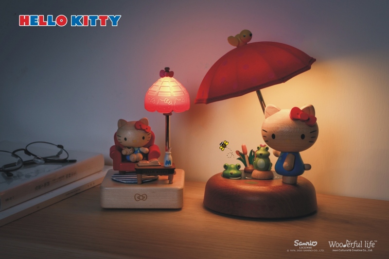 三麗鷗與知音文創合作,推出一系列三麗鷗明星的木製家居小物,除了有會隨著音樂擺盪的美樂蒂音樂盒,還有撐著小傘陪伴妞妞度過每個夜晚的Hello Kitty小夜燈,以及與大家一同走過時光流逝的布丁狗萬年曆!