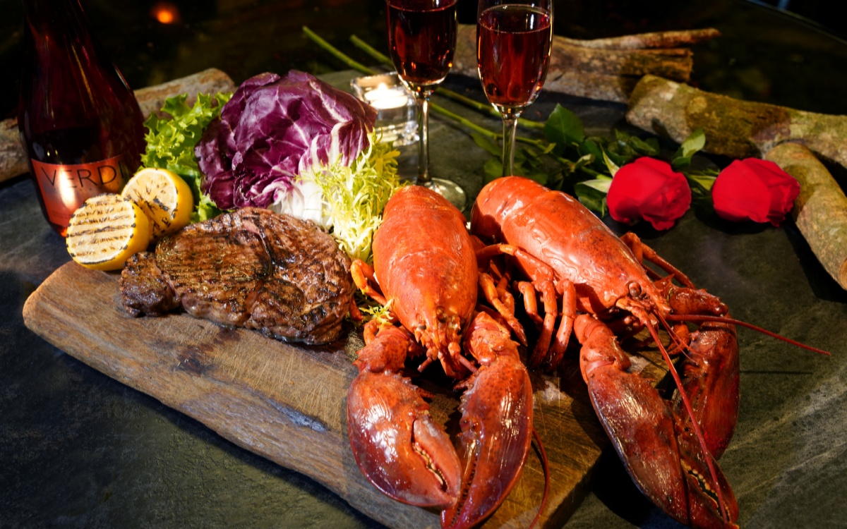 雲軒西餐廳於2月8日至2月25日,推出期間限定「心語愛戀」雙人分享餐,售價NT$6,380+10%,包含兩隻新鮮龍蝦及10盎司安格斯肋眼牛排搭配Verdi氣泡酒乙瓶,另可無限享用繽紛沙拉吧、各式情人節主題甜點,並可客製化3.8吋馬卡龍,將甜言蜜語寫下送給獨一無二的他,度過一個最浪漫驚喜的情人節。