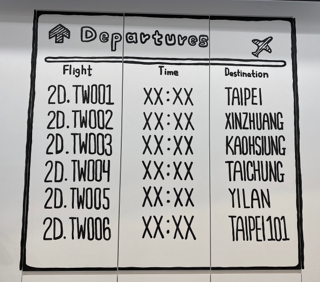 除了10月23日將開幕的「台北101」之外,班機時刻表上他們也偷偷釋出新消息,年底以「懷舊鐵道」為主題的宜蘭旗艦店將會大家見面,最後妞編輯在此祝大家搭乘2D Airlines航班時,有趟愉快舒適的旅程,謝謝!