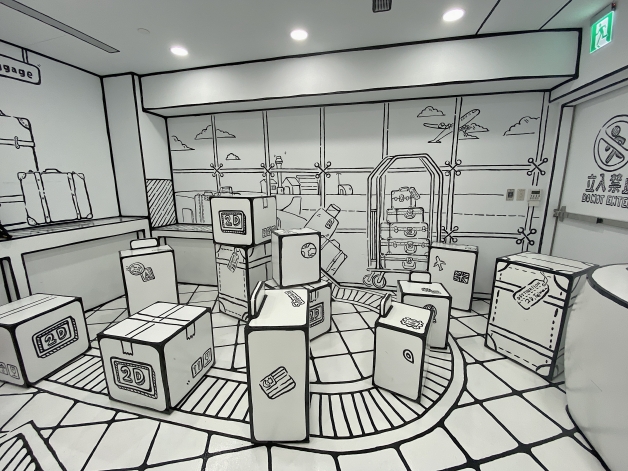 各位旅客您好,歡迎乘坐2D Airlines~店門口設計成「安檢門」造型,妞妞們入內會先收到登機證,上面還有「登機時間」提醒大家記得留意,不要錯過班機,用餐空間設計則打造成「行李輸送帶」,隨身的行李箱化身成餐桌椅,整個就是神還原「機場大廳」和「出關」場景,完全身歷其境!