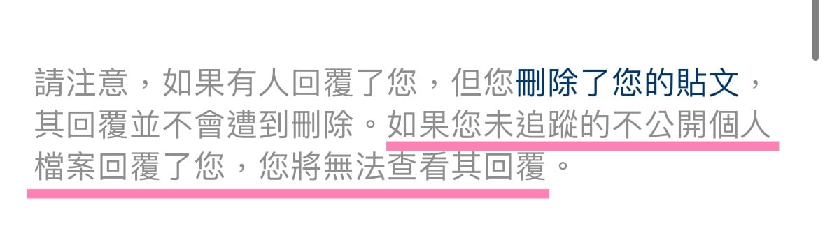 大家有碰到這個狀況嗎?明明串文下方寫9則回覆,為什麼下滑檢視只看到6則?官方解答:如果你沒有追蹤對方,對方的檔案又設定為「不公開」,這樣就無法看到他的留言哦~