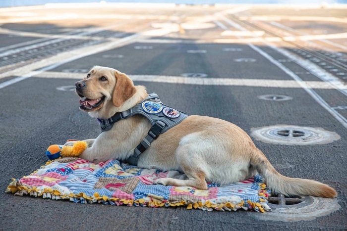 從軍身心壓力大,作為需要長時間停留在海上的海軍,體能和壓力也更容易出現問題。為此美國海軍打造了一套「壓力管理計畫」,而在這個計畫之中,三歲的拉布拉多妹妹 Sage 將成為「福特號航空母艦」首位常駐狗狗船員,陪伴大家一起度過海上時光,而牠的主要任務就是治癒船上作業人員的心,讓大家紓壓~