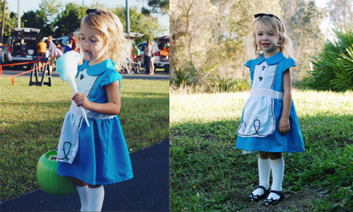 萬聖節當然不能錯過裝扮的機會,今年Lyla的打扮是《愛麗絲夢遊仙境》的愛麗絲。擁有金黃色捲髮和古靈精怪表情的Lyla根本就是縮小版的愛麗絲。(小黑鞋是一隻貓咪,你發現了嗎?)