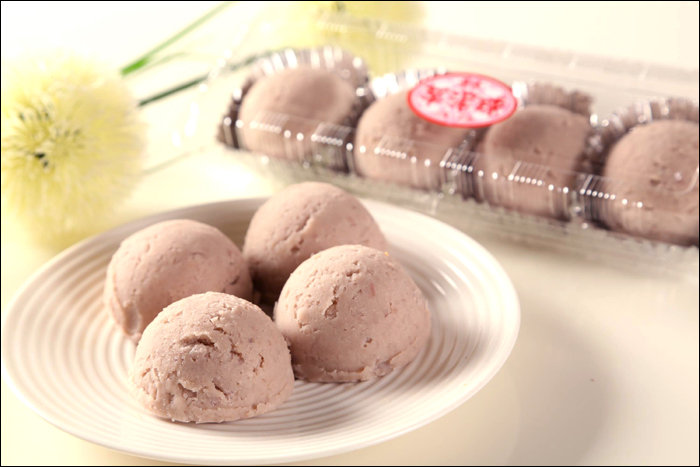 基隆人氣伴手禮代表!選用上等大甲芋頭取其中第二層的芋頭心製作而成,芋泥球不僅是紮實的芋泥,仔細品嚐還會有大小不一的芋頭顆粒,身為芋頭控的妞妞們能不買來吃嗎(流口水),而且一組四顆售價55元,這麼高CP值的芋頭球絕對要囤購!