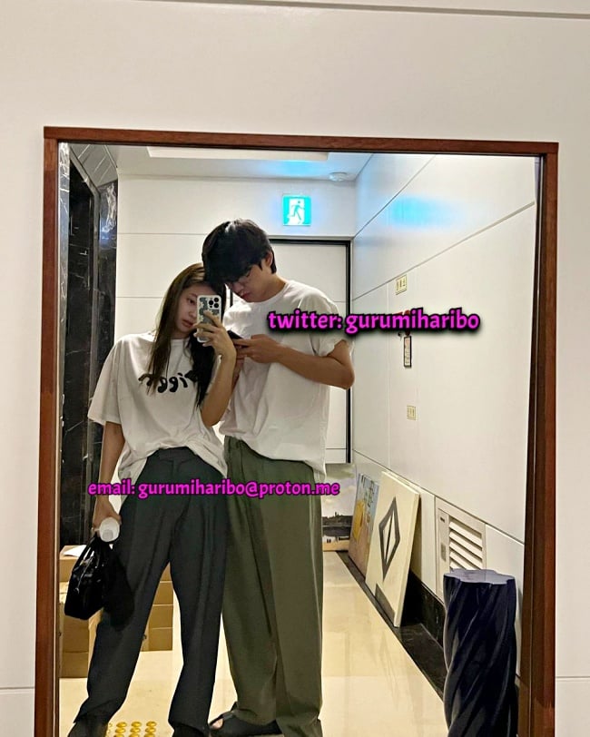 不過稍早同一個推特帳號又有新動作,居然又加碼釋出「新的約會證據照」,這次照片中疑似Jennie與V的男女,分別帶著帽子以及口罩,只露出眼睛「親密貼頭自拍」,場景可以看出來某大樓的電梯裡,兩人身上還穿著同款「小熊維尼情侶上衣」,甜蜜的動作+穿著一樣是女方視角拍攝…讓網友呼籲經紀公司盡快處理。