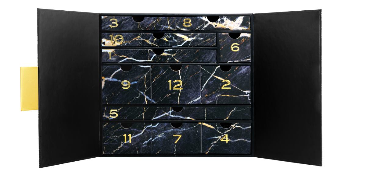 來自義大利的香氛品牌Acqua di Parma,今年的聖誕倒數月曆設計靈感來自於Acqua di Parma最具代表性的禮物帽盒,採用黃色和金色色調的大理石紙裝飾,將工藝與設計融為一體,是專為聖誕期間設計的限定版本。聖誕倒數月曆中包含從克羅尼亞系列、藍色地中海系列和珍貴的格調系列香水,到新款的聖誕居家香氛系列中 炙烈壁火 28gr和 靜謐雪松 70gr 香氛蠟燭,一共有25格禮物。