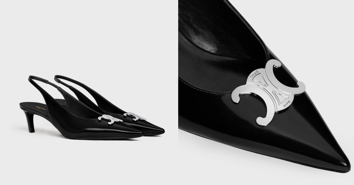 百看不膩的TRIOMPHE標誌融合尖頭鞋的設計就是意圖使人淪陷!喜歡乾淨利落穿搭風格的妞妞可以參考CELINE這款光面牛皮革ALMA TRIOMPHE露跟鞋,由100%牛皮革製成,銀色的凱旋門標誌將跟鞋的質感提升,日常搭配洋裝或西裝褲都OK!